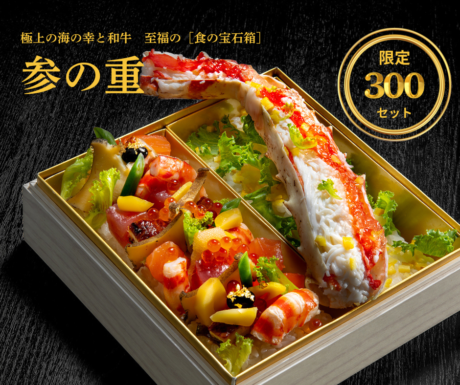 年越しを楽しむオードブルとして、新年を祝うおせち料理としてレストランの 職人が創る豪華な「食の宝石箱」をお楽しみください。
